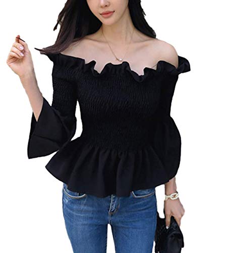 【53%オフ】【NOGIノギ】 オフショル ペプラム プルオーバー ギャザー フィット フレア レディース ファッション カジュアル トップス st0084 (ブラック) ノースリーブ 夏 春 肩出し デコルテ フェミニン 可愛い かわいい 細見え 韓国 韓国風 オルチャン オシャレ おしゃれ チャイニー 美人