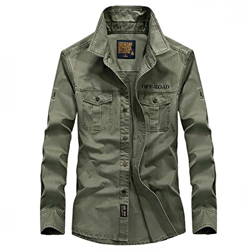 (メイク トゥ ビー) Make 2 Be メンズ 長袖 ミリタリー シャツ コットン 無地 カジュアル KB31(02.グリーン_XL)