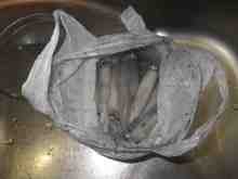 これが墨汁。マメイカって小さい割に墨多く吐くのよね。煮付けのの煮汁黒くさせないためにも墨汁マメにとるのが必須ね。