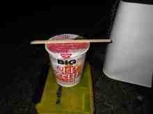 ノーフッキング、潮止まりでもあるので夕食を取ります。今日の晩御飯はカップヌードルBIGでございます。