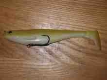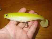 で、メーカーの魚矢によると、売り文句は「トライ&エラーを繰り返し、こだわりぬいたボディバランスは、テールのアクションをスムーズにボディに伝え"ヘッドシェイク"します。スローに引ける強みと状況に合わせた使い方が出来る絶品のスイムベイトです。
