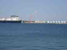 ガス基地とその奥に見える風車を見るとタンク前の位置関係がよく分かりますね。