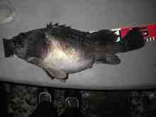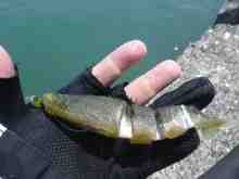 で、その頃そのパパは何をやっていたかというと、灯台の隅っこで見つけたバイトをネチってました。初めはバクラストン5”チャートシャッドで2回目からはジャバロン160チャートシャッド。で、5回目のバイトでようやく仕留めました、