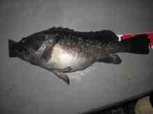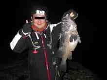 で、日も暮れてナイトゲームに突入です。浮き釣りの人方はあまり大きなソイを揚げていない模様でした。大型ソイが浮いて来ない?ちょっと不安がよぎりましたが、そこらへんでM氏がやってきてキャッチしたクロソイ計ってみると、