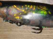 で、特徴の一つはアイからボディ内部にワイヤーが貫通していて、フッキング時にネオジム磁石で固定されていたフックが外れ、アイとフックがスイベルを介してダイレクトに繋がることによりバラシが軽減できるのだと、ふむふむ。