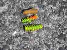 ほらこれ、上がデビルホッグ、下の二つが基地外パルスです。アブちゃんてフックの端からキレイに食い千切るのよね。しかし、たかだか7gの差がフッキングを大きく左右するなんてアブちゃんてば実はかなり繊細なのね。むむむ。