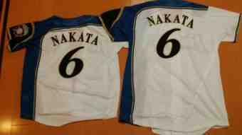 右側がそのパパ、左側がそのちゃんの中田選手のレプリカユニフォーム。