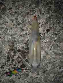 ・釣っている最中に小魚のボイルが何度かあったので正体分からんけれどもフィッシュイーターがいたみたい。ボイルが始まるとマメイカも釣れなくなったからそこが止め時かな。でも一体どんな魚なんだろう?