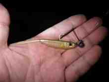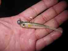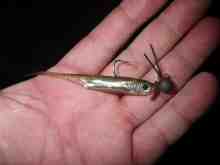 で、また夜アブちゃん。さっきのより1cm長い。ボトムコンタクトロールはSXULのロッドでラインは3lbなのでこれがまた楽しいこと。