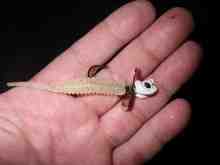 先ずはウィールヘッドガードの1/16ozにスーパーシャッドシェイプワーム3”のパールアユをセットしてミドストです。