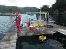 海の上に筏があって、筏は海底にロープで繋いであって船渡しで筏に乗って釣りをする訳です。