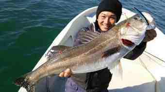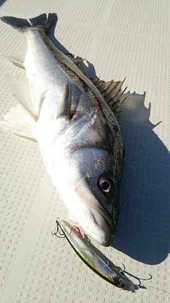 Oさんの一挙手一投足に目を奪われながら、私も横目で同じ釣り方でやらさせて頂きランカーシーバスを楽しみました。
