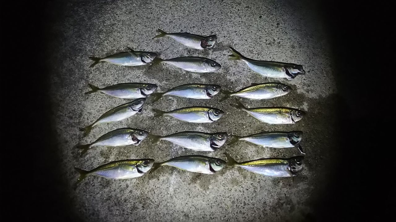 サイズは20~23cmと先日と先日より小振りになったが体高もしっかりしており良く引く夏アジ。本当に楽しい