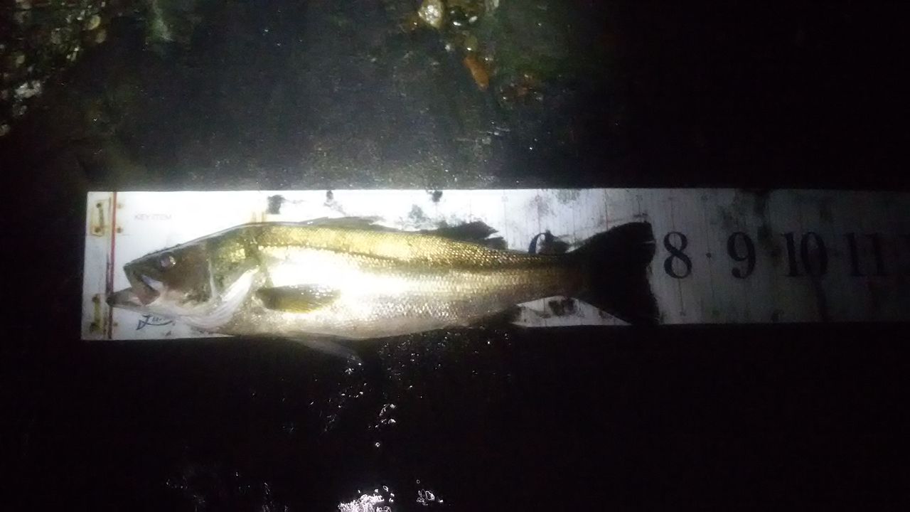 ボクもコンッ!くらいのアタリはあるがウェーディングしていると流されそうな流れ。シーバスも上手く喰いきれないらしい