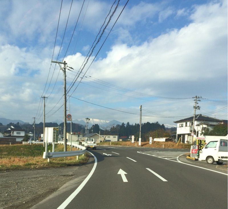 麓の道には全く雪は無し。遠くの山は僅かに雪化粧(^_^)
