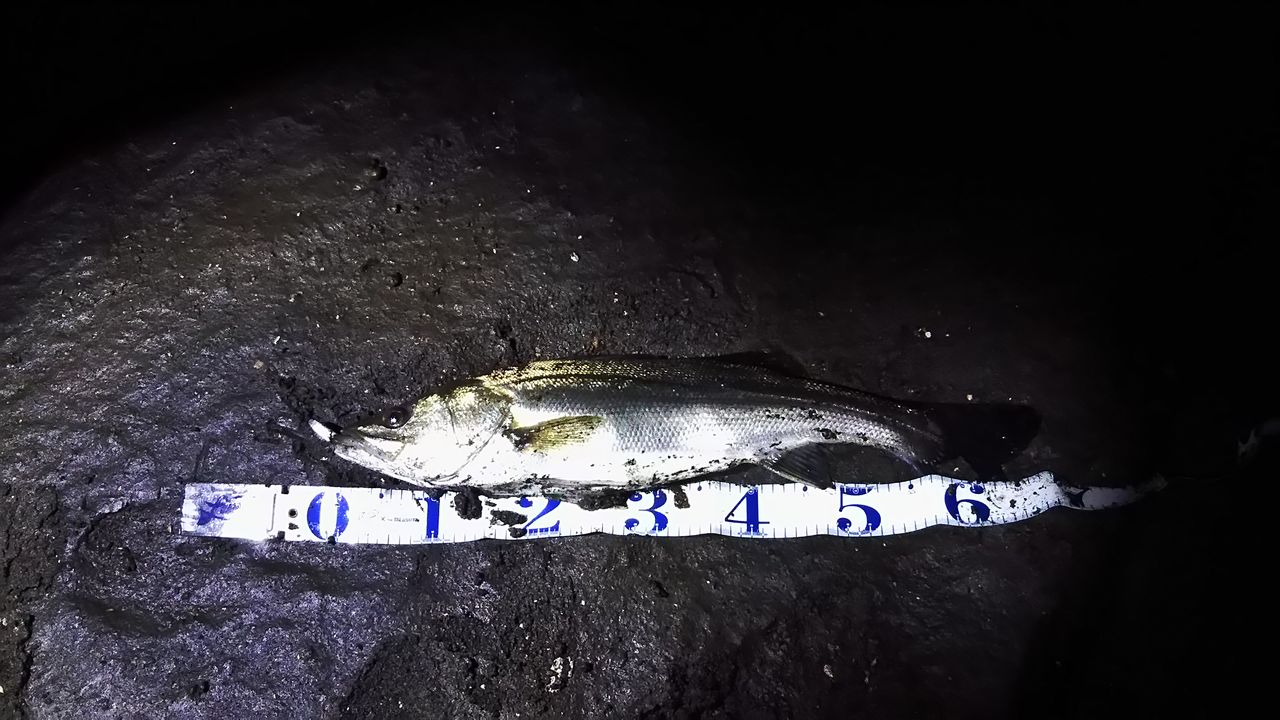 そして更に小ぶりなシーバスを釣ってハンドランディングするがツルリ。