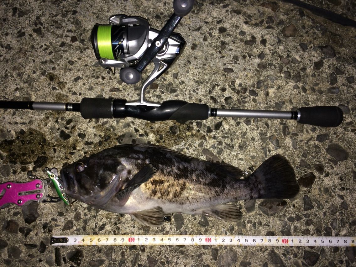 あまりファイトしている様子はなかったのですが、抜き上げたのは35cmのクロソイ…f^_^;)