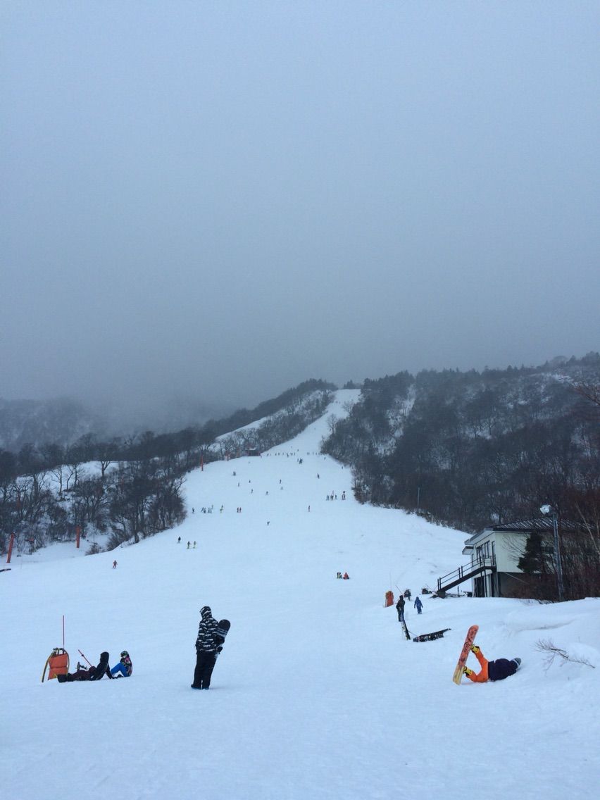 一瞬心が折れそうになりましたが中腹部のゲレンデに行くという仲間に誘われ雨の中ゴンドラに乗ると、中腹部の天候はみぞれ…f^_^;)