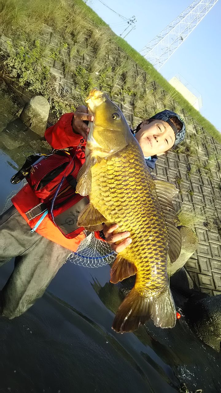 クロスウェイク111に掛かった「ドラード」みたいな鯉。朝日に当たると色が綺麗!