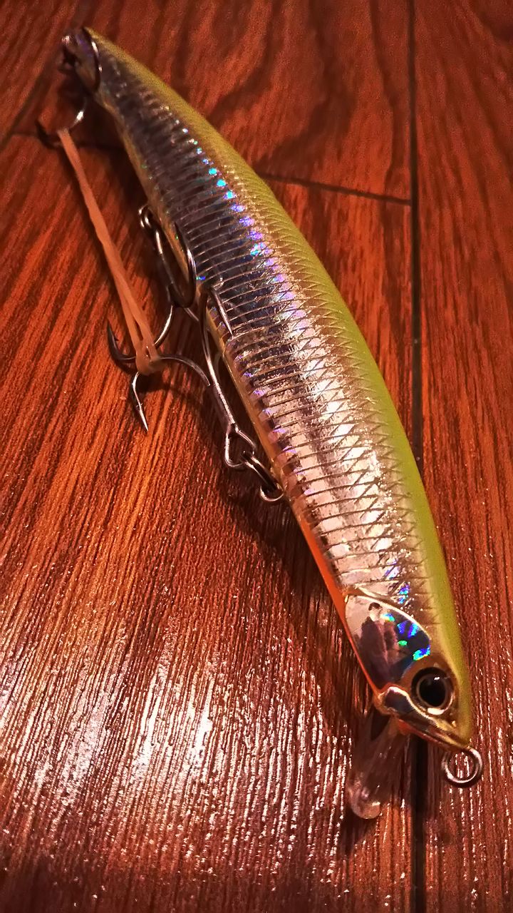 イワシパターンにはやや不向きだが…タイドミノー 145 SLD-F。古いがかなり良いルアー。釣果はエスクリムにも負けません