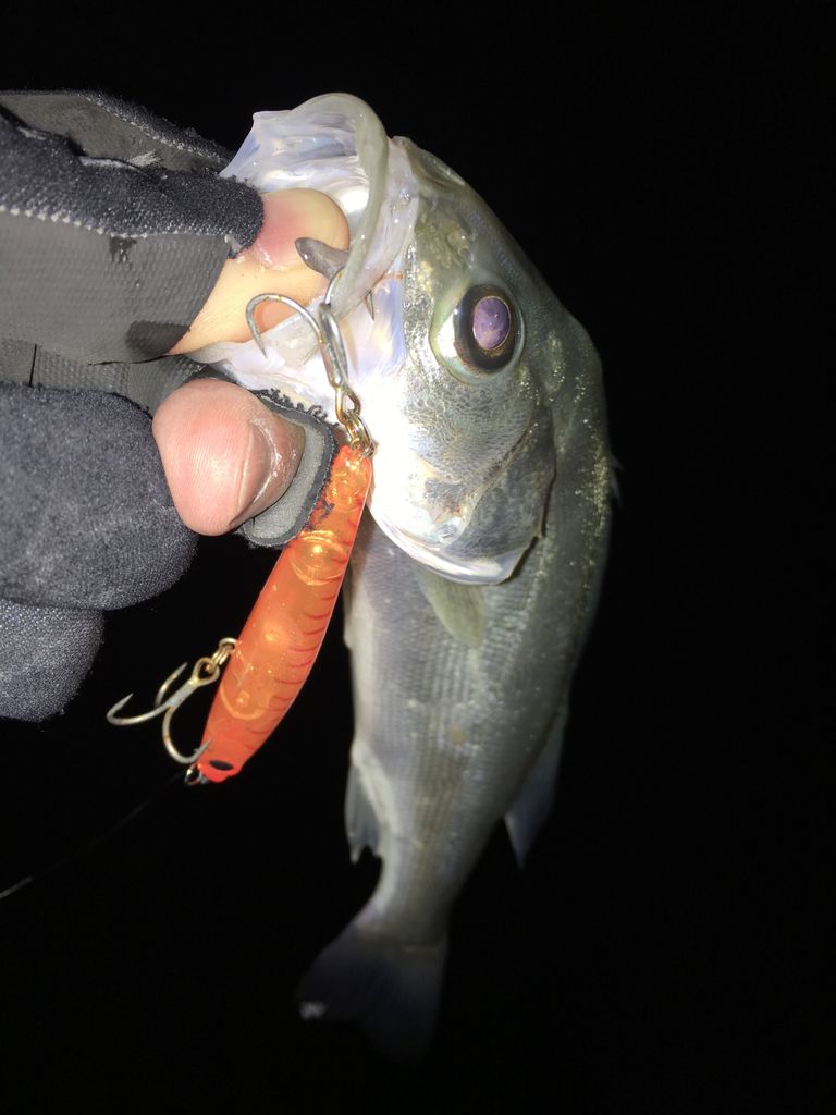 上げ潮の緩み始めたタイミングだった為、セイゴの反応は最初から良好な状態。S.P.M75を投入し流れに乗せ水面下をゆっくりリトリーブするだけでバイトが出ます。ただし、バイトはコッと突くだけ。反射的に合わせないと乗りません。初めの数回で合わすタイミングが分かれば後は簡単です。数時間やって一回程度しかバイトが出ない釣りでは徐々にタイミングを合わすなんて事は出来ませんが、この釣りではバイトは複数あるので心配いりません。この辺りもお手軽ですね。