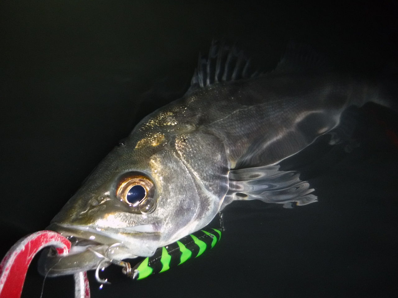 サイズ的には小ぶりでしたがまずは1匹獲れて一安心。ロッドがしっかり曲がるので突っ込まれてもロッドがシーバスの動きを抑えながらいなしてくれます。ただもう少し大きいサイズで試したいですね。