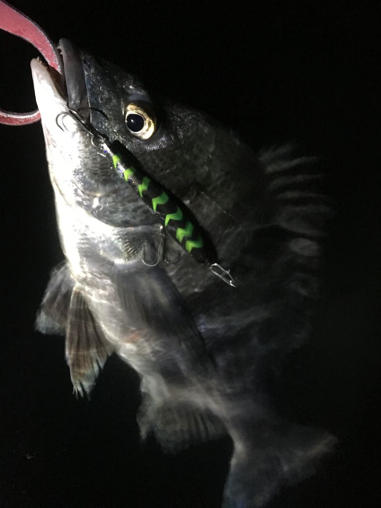 また別の日にはウィードが生い茂っているシャローエリアをS.P.M75で、ウィードの上をテロテロ引いてクロダイをキャッチ。