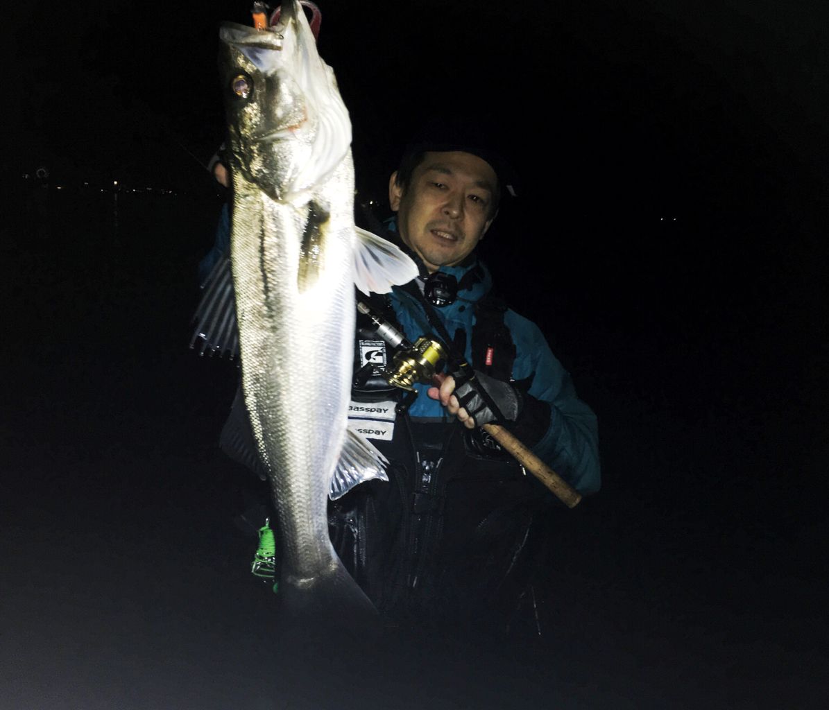 まぁそこは抜かりなくその後しっかりとヒット。しかも一回り大きい奴。先輩の面目も保ち終わる事が出来ました。このシーバスはシャローをシュガーミノーSG90Fでボトムの少し上をユラユラ泳がすイメージでヒットしました。