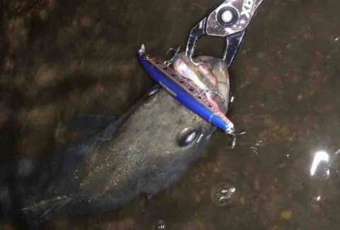 ぐにょーーんと曲がり派手なエラ洗い!!
