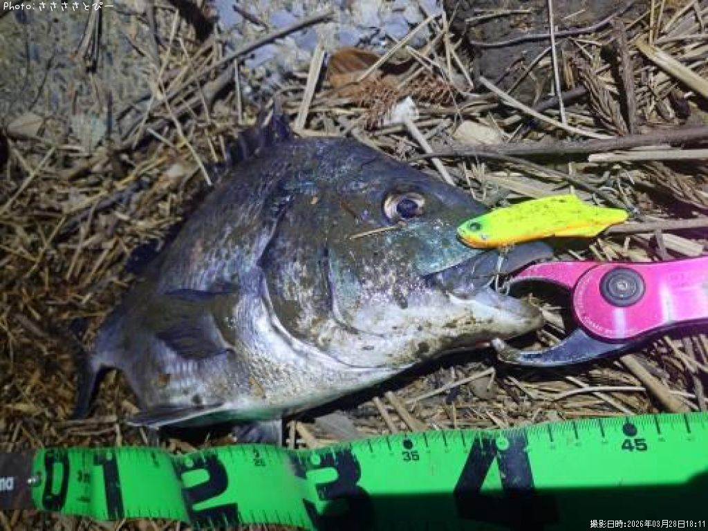 ささささとぴーさんの釣行報告レポートです。2026年3月28日(18時33分)に釣れた黒鯛のポイント千葉県内房釣果詳細情報です。
